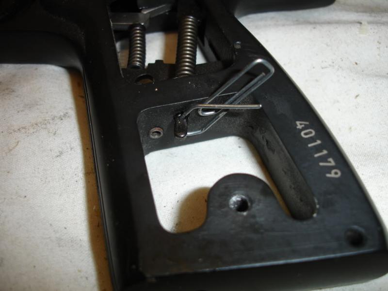 Lo primero que tienes que hacer es poner un clip en esa pieza del mecanismo de disparo, antes de desmontar nada mas.