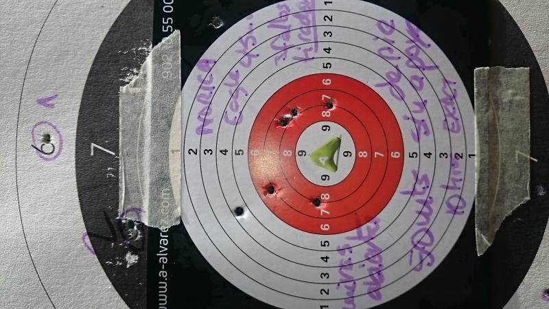 Los Straton quedan descartados.Para mí ya es un éxito que la munición toque papel,tratándose del arma que es,económica y sencilla.El hecho de juntar unos tiros tocándose a esos metros,es para repensar cuando se dice que las Noricas no agrupan