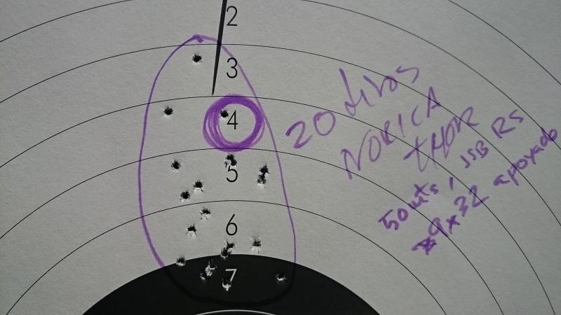 No están mal. Creo que las puedes mejorar si ajustas miras de forma que apuntes A la base. Prueba con los Jsb exactamente y los rs. Tengo dianas a 50 mts nuevas con ella t otras con la marvic con cañón Black eagle a pulso que creo que son interesantes. A ver si pillo el portátil ue ando de vacas y con eonmovil es un rollo