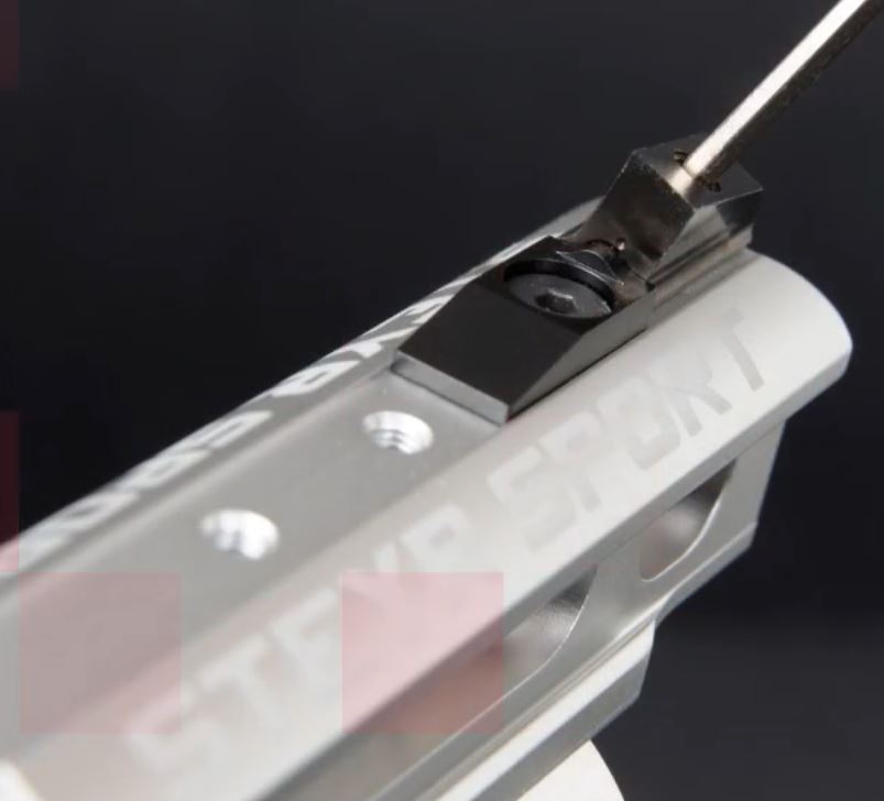 Una cosa es el punto de mira rotatorio como el que tiene la Anschütz LP@, que gira sobre su eje vertical de forma que puede ofrecer tres anchos diferentes, y otra el de esta nueva Steyr, que lo que hace es bascular horizontalmente junto con el alza a ambos lados de forma que puedes tirar con la pistola ligeramente canteada y tener las miras perfectamente horizontales. La nueva FWB P8X, que por cierto a mí me gusta mucho, también trae este sistema (la P44 ya lo traía).