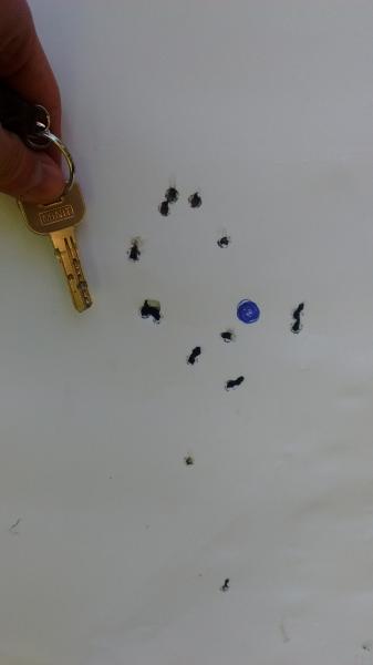 Buenos días foreros, ayer realice las primeras pruebas a 20 metros. QUE TRISTEZA! Coloco la diana, preparo la zona de tiro, me apoyo sobre mi maletín con mantas y todo listo para empezar. Realizo el primer disparo y noto que el gatillo está muy duro, lo pongo a mi gusto y comienzo a disparar. El primer tiro queda desviado, y comienzo con las correcciones, y al ver que los disparos van reaccionando a la par que muevo las torretas, comienzo a pensar que todo va a la perfección. Cuando me acerco al objetivo, al quinto tiro, comienzan los disparos desconcertantes, primero arriba a la izquierda, repito e impacta a 8 cm abajo a la derecha, imperfecciones desproporcionadas para tratarse de 20 metros, teniendo en cuenta que el indio tenía un buen día. Lo primero que pienso es el devolverla y asumir el disgusto, pero cuando me quedaban diez minutos para irme decido barajar la posibilidad de que haya roto el visor, teniendo en cuenta que es un leapers 3-9x40 absolutamente nuevo montado sobre unas monturas leapers monopieza. Realizo dos disparos mal y rápido con las miras abiertas (teniendo en cuenta que no son mi fuerte) y parece que se aproximan los disparos (no debo tenerlos en cuenta ya que no los realice en condiciones óptimas). Luego ya en casa pensando llegue a una manera de salir de dudas. Hoy vuelvo a hacer pruebas, esta vez llevo la cometa sin visor, mi hatsan at44-10 montada con un leapers 3-9x40 que va de maravilla y el nuevo leapers a parte. Mi plan es realizar unas series con las miras abiertas para ver si es el propio cañón el que no agrupa. Después desmontare el leapers de la hatsan y le montare el nuevo, para ver si está roto . Si está roto llamaré a la armería Merino, ya que no es normal que vendan un visor en pack, el cual se rompe al tercer disparo. En caso de ser la carabina la que no agrupe, tratare de devolverla o en su defecto comprar un cañón de la fusion.. Esta tarde realizaré las segundas pruebas para salir de dudas. Se me olvido decir que a medida que pegaBa más tiros las agrupaciones empeoraban, hasta el punto que necesite 11 disparos para darle a una lata a 20 metros, eso sí, los efectos fueron devastadores.Espero que les sirva de ayuda, les adjunto fotos de las dos "agrupaciones" con visor y otra de los dos disparos con las miras abiertas, un saludo. Aquí va una imagen de la primera agrupación(los dos tiros de abajo son las primeras correcciones)
