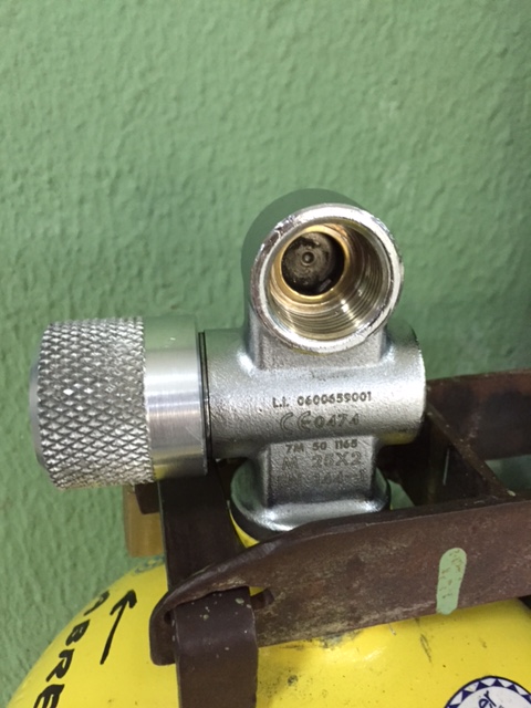 Cuando el manometro marque la presión de trabajo de la carabina, cierras la botella, y abres el purgador, que es el tornillo que esta enfrente al manometro, para quitar la presión residual en la tubería........y ya esta.