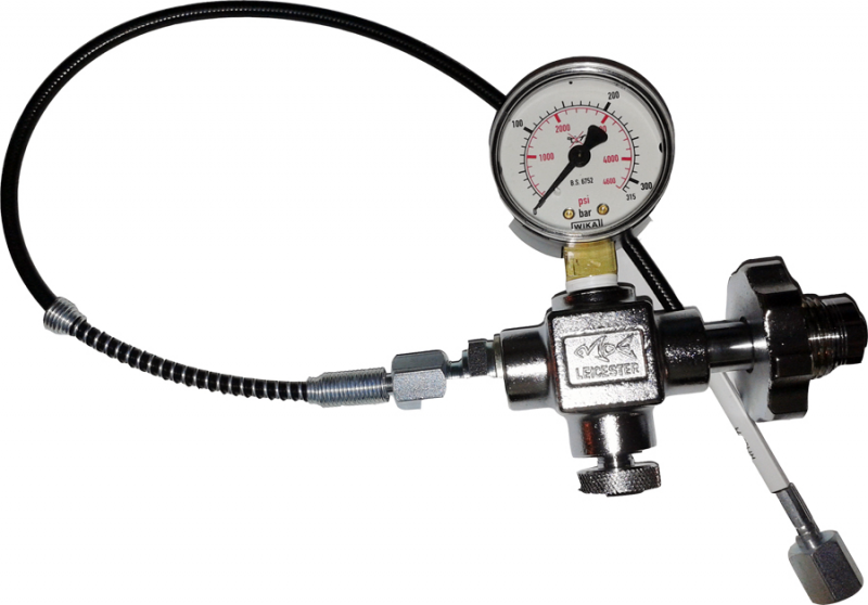 Es la tubería con un manometro, que de un lado conectas a la botella de aire comprimido, y del otro lado a la carabina.
