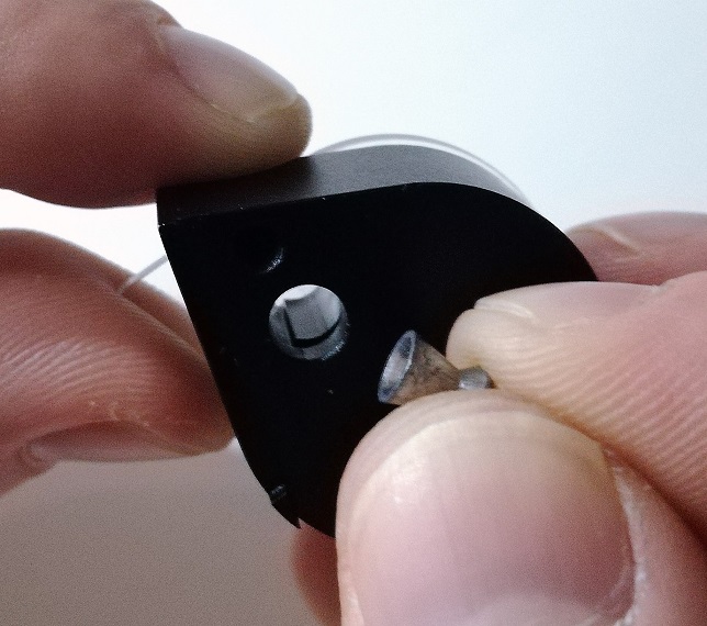 - El primer balín se introduce por detrás, introduciéndolo por la copa. Primero debe girarse el plástico hacia la izquierda: