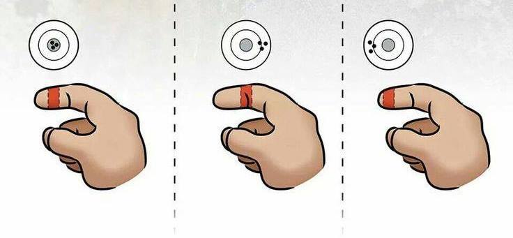 Aquí dejo gráfico de cómo posicionar dedo índice a la hora de disparar, he de decir que lo tengo comprobado y va de fábula en la yema del dedo, en mi caso es en carabina, que para el caso es similar.