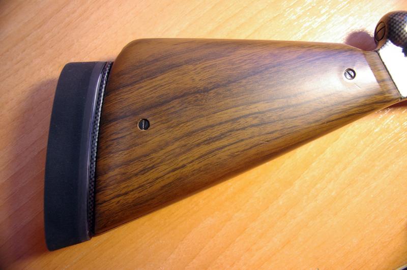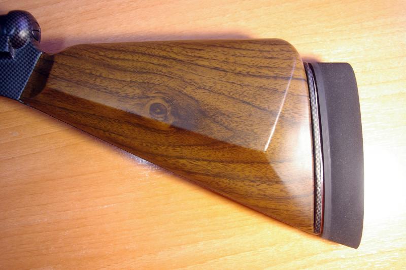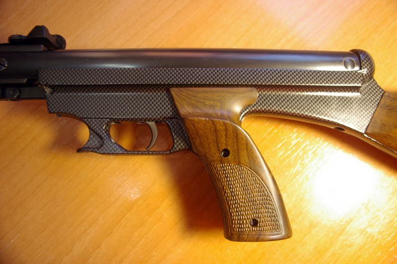 Opté por la hidroimpresión para las cachas de la culata y el pistolet en acabado de madera de roble, y el armazón de aluminio también por hidroimpresión en imitación de fibra de carbono. Cuesta una pasta pero despues de ver el resultado creo que mereció la pena.