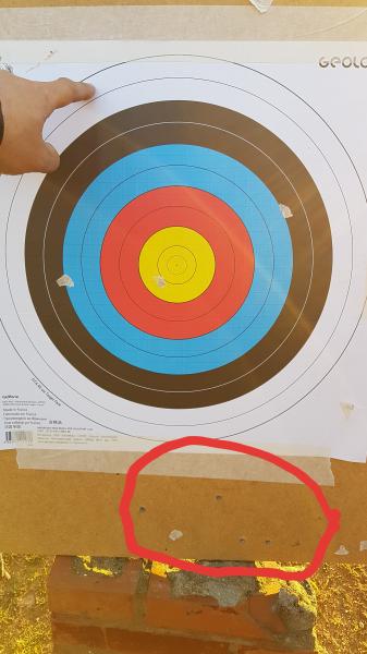 el dedo señala donde apuntaba y abajo donde daba,los 3 balines clavados de la dcha son de hoy el resto del otro dia...no suben ni pa atras
