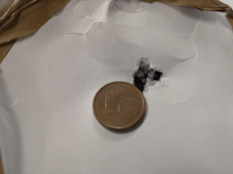Por ser un modelo peculiar y que a mi personalmente me generaba muchas dudas, voy a mostrar lo que resultó ser la puesta a tiro de esta "miniatura", carabina recién sacada de caja, nisiquiera me tome la molestia de limpiar su pequeño cañón Lothar Wlather de 250mm, osea la versión corta de esta carabina. Diana a 35m y visor de 10x, energía 24j, balines barracuda Macht disparando a 264ms, que resultaron cerrar más los grupos que los jsb heavy, decir también que con los monster rediseñados a 250ms agrupaba igual de bien que con los HN. Os pongo el grupo que a mi me sorprendió para bien. Es una distancia modesta 35m, pero teniendo en cuenta el formato de arma y un visor de 10x, creo que da referencia de las capacidades de este guguete, y más tratándose del calibre 4.5 que a veces resulta menospreciado y más aún en estos conceptos de carabinas, solo veo pruebas en 5.5 y 6.35, y como he tenido varias Engun en 4.5 e de decir que siempre me han sorprendido en este calibre, resultan super precisas, disparar a 24j con pcp sigue siendo un placer.