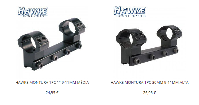 Eso si, las monturas de una sola pieza, no dos anillas, y de un mínimo de calidad, como las Hawke (unos 25 €), capaces de apretar a huevo sobre los carriles. No montes unas económicas, porque traen unos tornillos de muy poco diámetro, y mala calidad............