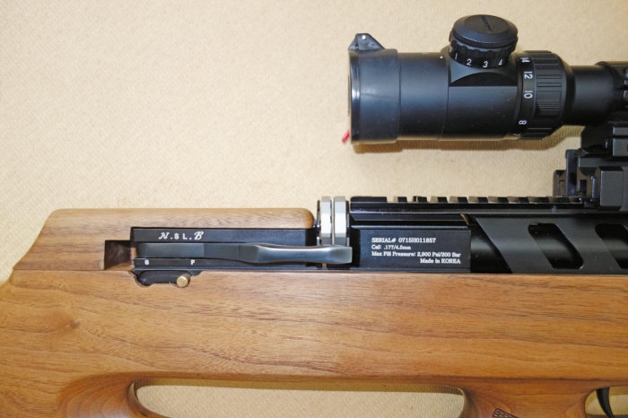 Lo curioso de este tipo de herramientas, es que la distancia desde el martillo al gatillo es de mas de 20 cm es decir tiene una barra de trasmisión pero no perjudica en nada al disparo, aunque lógicamente si estuvieran juntos como en una carabina clásica seria todavía mas sensible la cola del disparador..