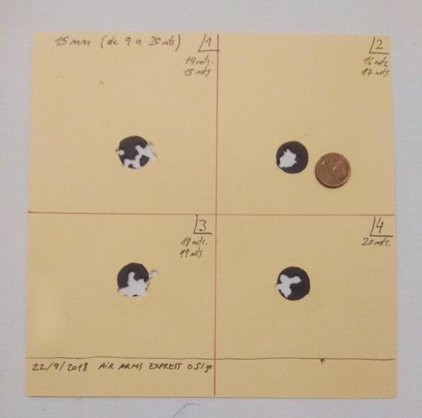 Como veréis, son mejores dianas las primeras a pesar de estar tirando al aire libre... Y el motivo no es otro que la falta de entreno últimamente