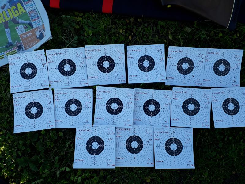 Tirada como de costumbre,una vez hecho el ajuste la dianas son sin cortes,ni movido ajustes.Visor corregido en la distancia de 50m...y lo mismo,tal cual han salido y tampoco he movido ajustes.