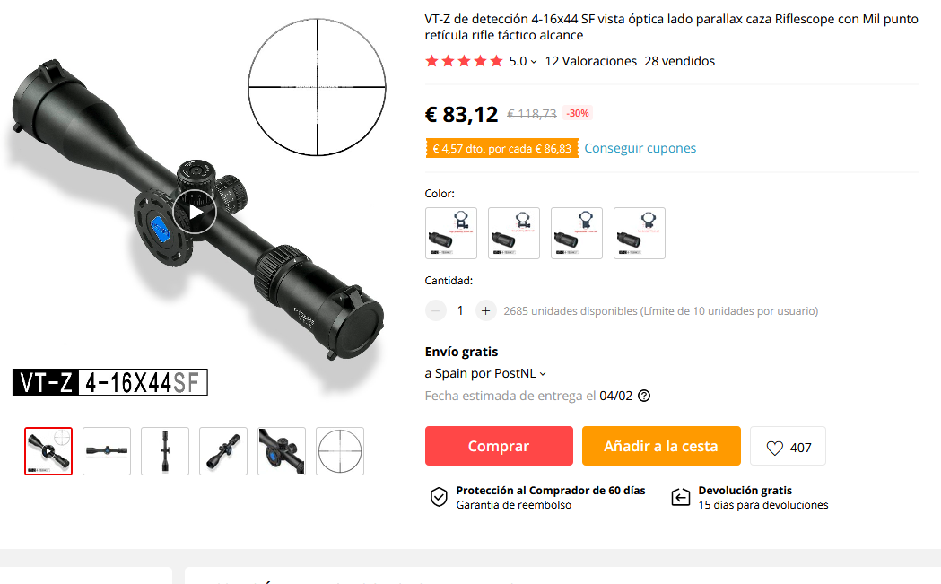 Sisco1968 escribió:sward71 escribió:Este último me gustaba, pero ahora que decís eso... El tema aduanas, pensáis que es fácil que venga con recargo sea cual sea el que compre? De las monturas cambio a unas de 3 de diámetro y altas.