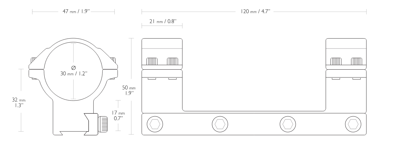 Como te he comentado, solo hay una montura de Hawke de 30mm, la alta, que da para visores de 50mm. Yo la tengo con con dos visores (un Visionking y un Discovery) y con las tapas puestas no tocan en la carabina