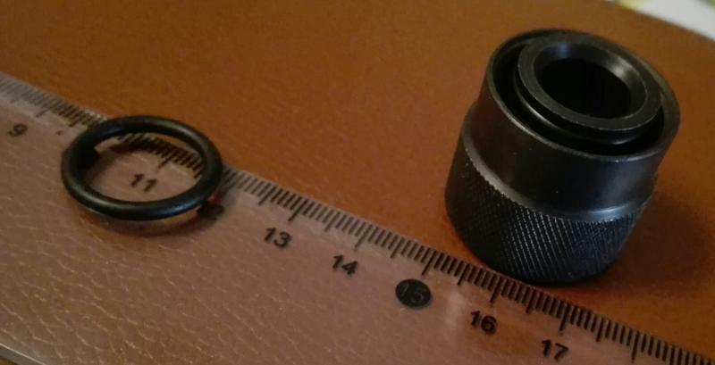Estaba liado con las fotos de Internet. Este es el tapón de la mía, sólo lleva una tórica de 14x2.5 que entra muy justa, es posible que valga una de 15x2. La pequeña no lleva porque no le hace falta.