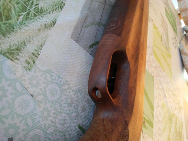 En la primera foto palanca del seguro puesta, segunda seguro quitado y en la tercera obsérvese la magnifica calidad de la madera.
