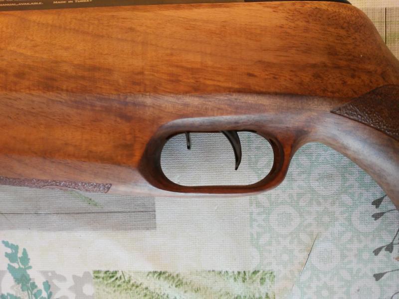 El seguro ningún problema es que al añadirle tanta madera parte de la cola del disparador y de la palanca del seguro están escondida. Por cierto agradezco que el seguro no se monte solo por que en mi caso seria un coñazo.