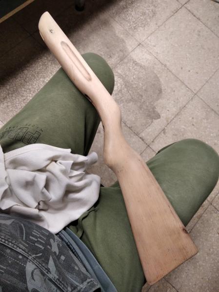 Para la culata lo que hice fue lijarla por completo, y aplicarle varias capas de tinte al agua color nogal hasta conseguir el tono oscuro que deseaba. Finalmente la acabé al aceite de teca, con unas cuantas manos, y para sacarle el brillo final, me pegué un buen rato frotando fuertemente con un trapo de algodón.