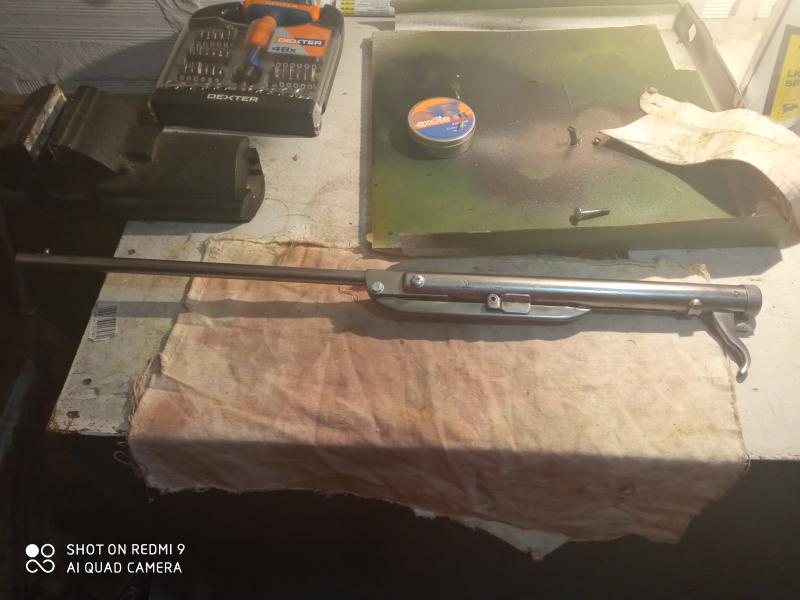 En Italia tenemos un límite de 7,5 julios para rifles de aire comprimido. Más de 7.5 julios, los rifles requieren una licencia de arma de fuego. Todavía tengo que montar la culata, pero he montado el fusil y todo funciona. Los tornillos que se muestran en la foto son temporales. Probé a una distancia de 10 mts y más o menos la potencia debería estar dentro de los 7.5 julios.El rifle es un recuerdo familiar, colgado en la pared durante décadas. Después de montar el todos volverá al mismo lugar.Cuando termine el trabajo, haré una decina de tiros desde 10 mts e insertaré las fotos.