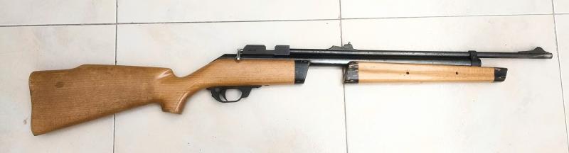 JoseHilario escribió:Hola compañero , tiene todo el aspecto de ser una Akron 100 , parece que alguien le pinto más tramo de negro en el guardamanos y en la culata originalmente tenía solamente unas franjas de aproximadamente un centímetro . A parte en el guardamanos en el extremo que tiene la abrazadera de plástico tenía una bisagra que hacía girar el mismo para bombear en vez de deslizarse hacia delante y hacia detrás como se ve en las fotos . Vamos como cualquier carabina de bombeo .