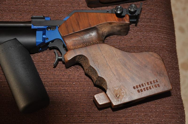 Tengo dos pistolas de CO2 para tirar en casa, dos Walther CPM1 y el modelo 3. Muy contento con ambas ya que tiran y funcionan de cine pese al aspecto de la 3, tienen dos cachas diferentes. La 1(azul) tiene la que traía la pistola y la 3 una artesanal Sarmiento, las dos son muy buenas y en sus armas funcionan perfectamente. Por un casual ya que no me sentía totalmente cómodo con el agarre de la 3 intercambio las empuñaduras en las armas, mi sorpresa es que después de tirar y realizar mucha tiradas con las dos me siento más cómodo y se nota en los resultados con el cambio. Pero existe una pega, las empuñadura que tiene puesta la 1 resulta que no puedo apretar el tornillo de ajuste de la empuñadura, de hacerlo la pistola no carga el tiro (en seco tampoco). Por esto resulta que esta empuñadura queda un poco suelta, desconozco que parte puede presionar para que esto suceda, no quiero meterle la lija a tontas y a ciegas.