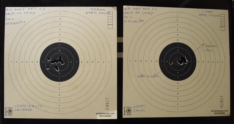 En ambas dianas hay 10 impactos. Una está hecha con rachas de viento de entre 15 y 20 km/h y la otra con viento muy flojito de solo 5 Km/h