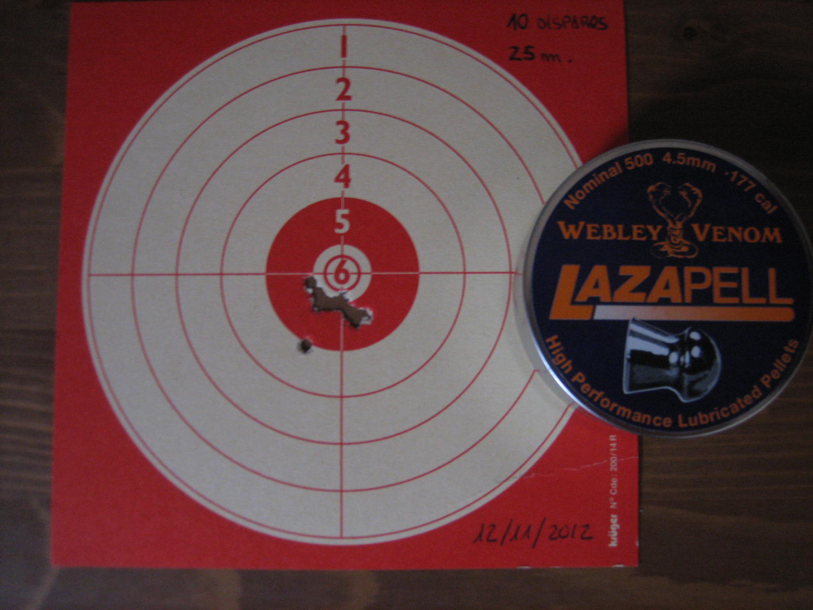 Ahí va una nueva agrupación!! esta vez con webley Lazapell de 8,7 Grs.(lo he tenido que buscar porque en la lata no viene este dato).