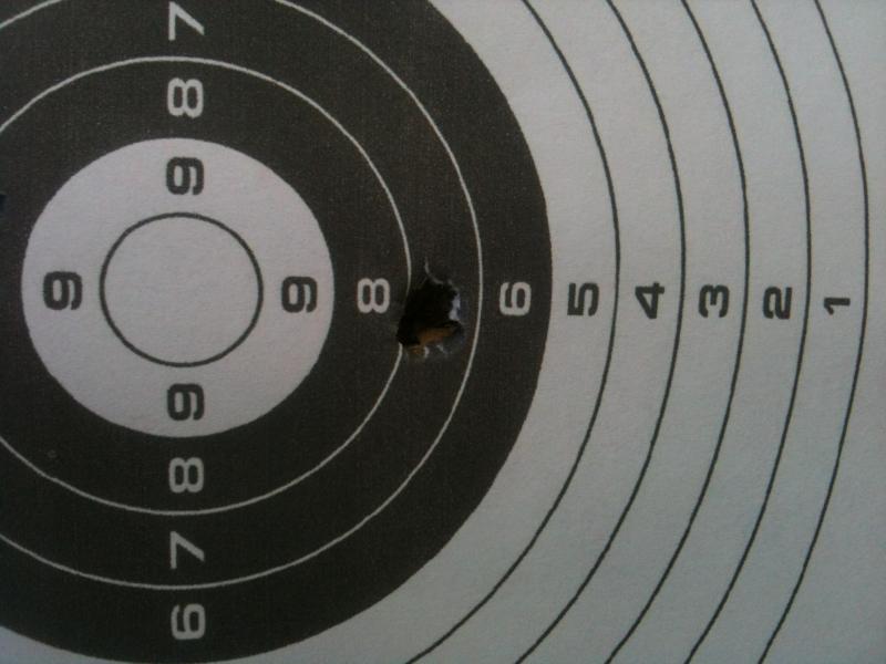 Esos 3 tiros fueron con los cometa exact heavy, como pesan mas por eso se kedaban mas bajos, luego hice una serie de 10 tiros a 20 metros y los agrupe todos en la mitad izquierda del 10 con cometa exact, sentado y apoyo delantero.