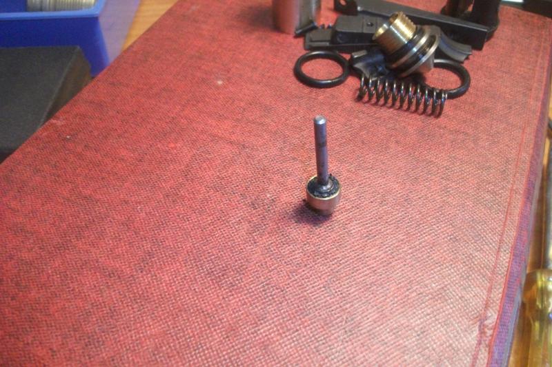 Había localizado la avería de "oído" pero me encontré varias sorpresas. En primer lugar la tórica de disparo estaba tan machacada que no supe discernir si era de asiento o la típica de aro. La he tenido que sacar de su asiento con la punta de una navajita, y me ha llevado media hora. Supongo que es lo que pasa cuando el personal aceita con productos indebidos. Estaba hecha una sola pieza con el metal.