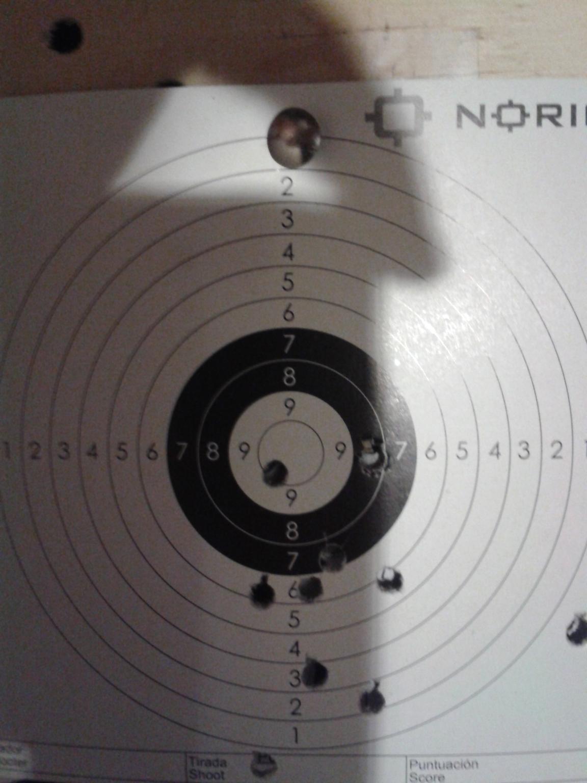 y al final he tirado de pie a pulso como a 20 metros y he metido 10 tiros con miras abiertas en la diana, que yo creo que no esta tan mal.