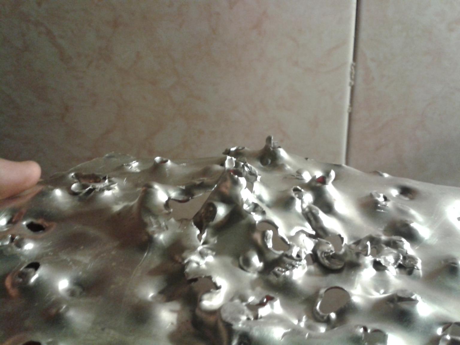 Luego he puesto una chapa de 1,5mm de espesor y lo atravesaba que daba gusto, unos agujeros cojonudos.