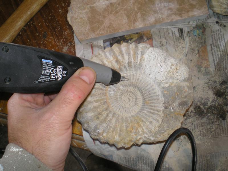 Te pongo una foto de la misma y un ammonite que estoy limpiando.