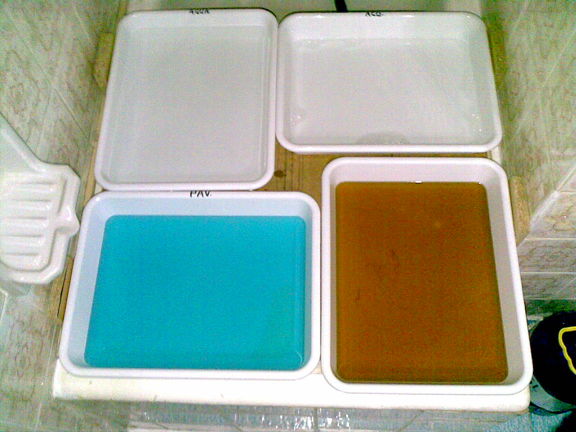 Después de comprar unas bandejitas de pvc en el chino del barrio me puse manos a la obra con el pavonado.
