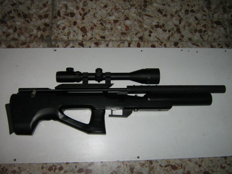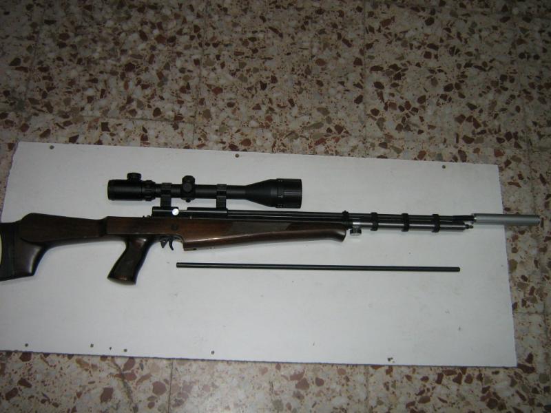 AHI VA ESTE OTRO CHISME , YO LO UNICO QUE HE HECHO ES CAMBIARLE EL CALIBRE , VENIA EN 5,5 , LE METI UN CAÑON DEL .22 , EMPUJADOR NUEVO Y AGRANDAR UN PELIN EN PUERTO, UNA 2260 PASADA A PCP, SE CARGA A 2000-2200 PSI Y TE DA UNOS 20-22 TIROS BUENOS Y MUY PRECISOS