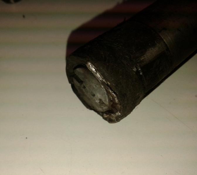 Según puedo ver,y además supongo también,lo que te ha pasado es que el pistón por el desgaste del sello ha golpeado contra el final de la cámara y se ha remachado la tuerca que comprime el sello.Esta tuerca debería salir,va a rosca y en la mía también tenía dos punzonadas para digamos no se desenroscase,de todas formas tendrás que quitarla,encuentres el sello original u otro...repito,por lo menos es lo que aprecio.