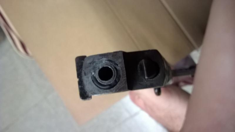 Si os fijáis en la culata, le falta la anilla para la correa en la parte de abajo. Se ve el agujero vacío.
