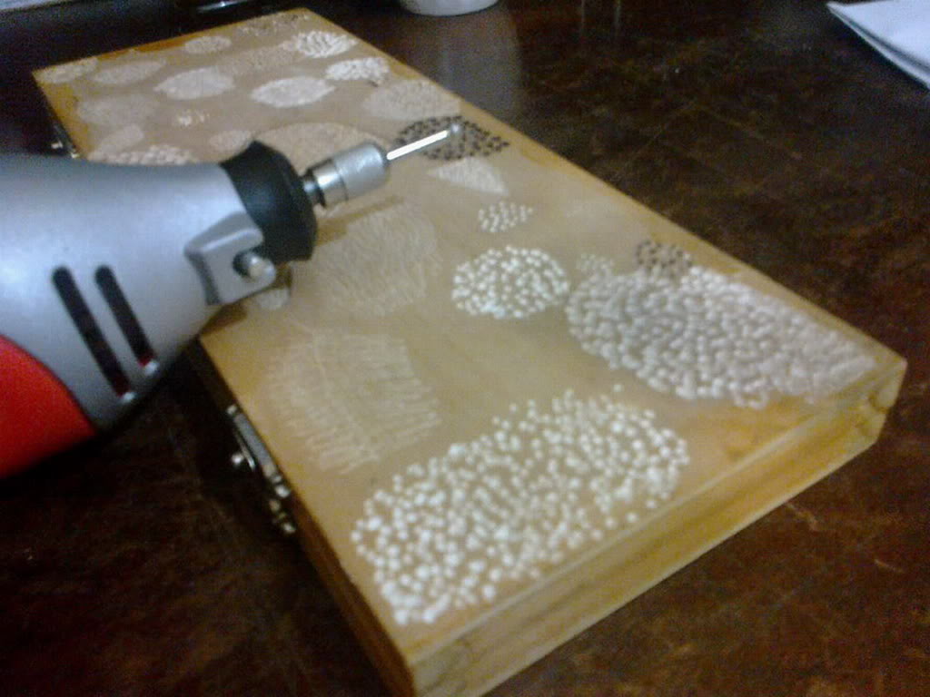 Un link, a como se hace el punteado, con una Dremel, tambien puede hacerse a mano, usando una punta gruesa, y mucha paciencia. Traduces con el traductor la pagina, y listo: