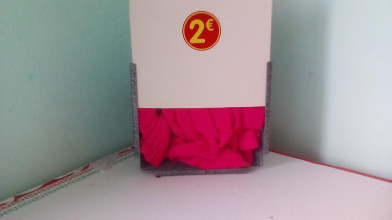 Esta hecho con el fondo de una caja de frutas, carton prensado, las uniones están hechas con cinta de embalar,