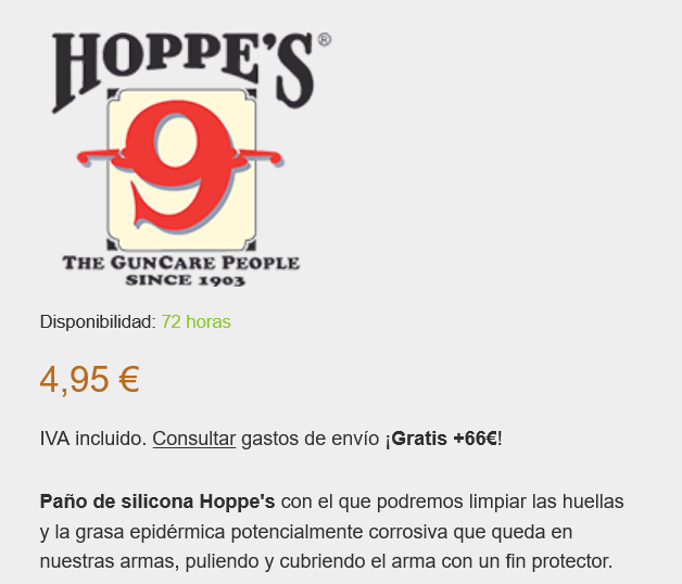 Yo me compré en el decatlon para probar el aceite que venden para armas y con eso limpiaba ahora antes de guardar, y he limpiado desde hace décadas desde con el 3 en 1, pasando por el ballistol y hasta con el de gamo, hasta de maquina de coser usaba en la vieja norica que tuvo un pavonado precioso hasta el final que la vendí...