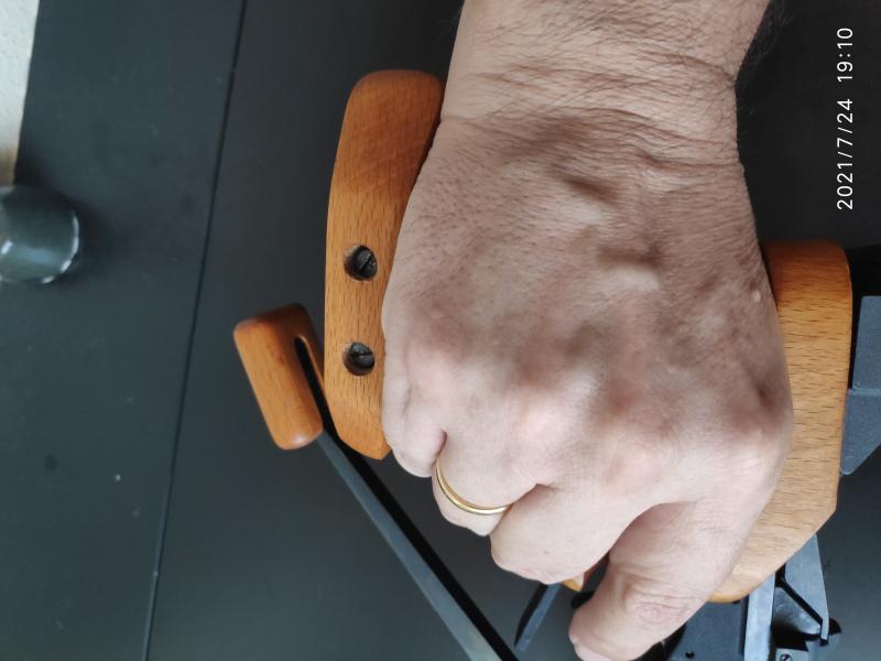 Justo cuando la cosa iba mejor me ha sorprendido un dolor en el codo que nunca antes había tenido. Al principio lo achaqué al "ansia" del principiante y falta de forma (la Baikal es pesada, 1300gr)... Pero cada día el dolor me llegaba antes. Revisando por el foro parece que el diagnóstico está claro: la empuñadura es ancha para mi mano. Así que o reduzco la empuñadura o busco otra más fina.