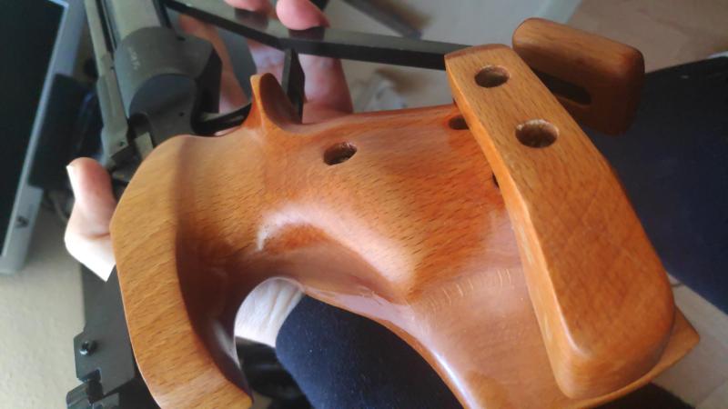 Adjunto fotos de la empuñadura original y de mi agarre, por si alguien pudiera indicarme o darme alguna idea de cómo meterle mano al tema.