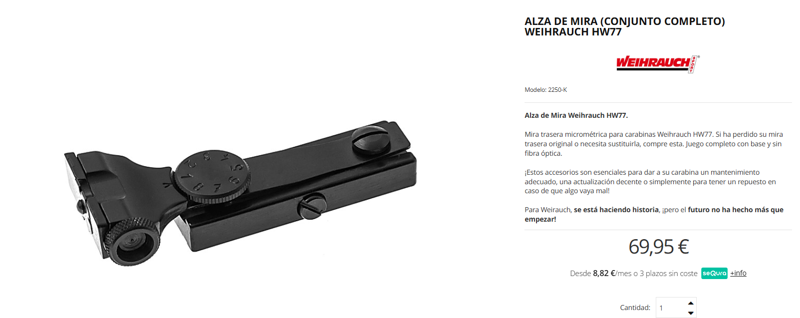 manolosolo escribió:https://www.mundilar.net/es/repuestos-carabinas/repuestos-carabinas-weihrauch/alza-de-mira-conjunto-completo-weihrauch-hw77.html?srsltid=AfmBOooTh69UG87GWCWduuIf7aDgyTlkxxxPPYK_hl15i0V1qQr8yTJv