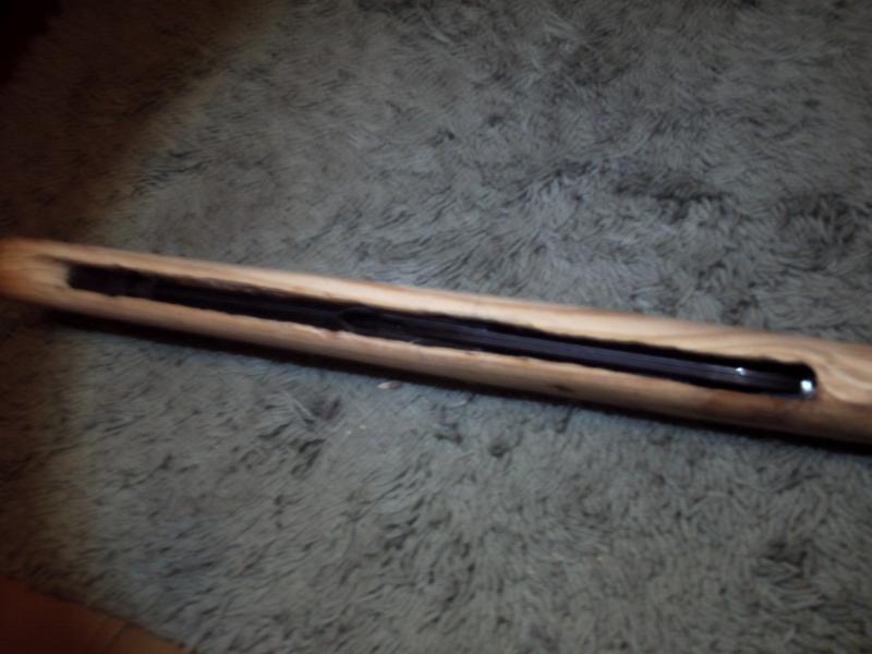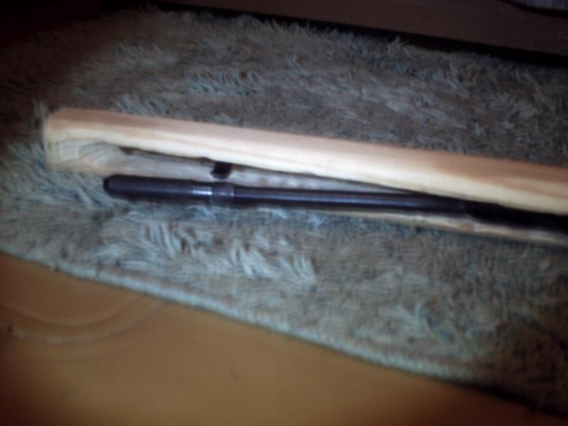 me falta lijar afinar bordes sacar relieves pulir tintar cantonera , pero la base ya ta ,el cañon se sujeta con su uña de origen,y lo mas interesante es que me a costado 40 euros todo ,arma madera regala to de to ,pero esta es de madera de pino mala , esperare a la del prototipo cuando este que me imajino que sera de madera de haya