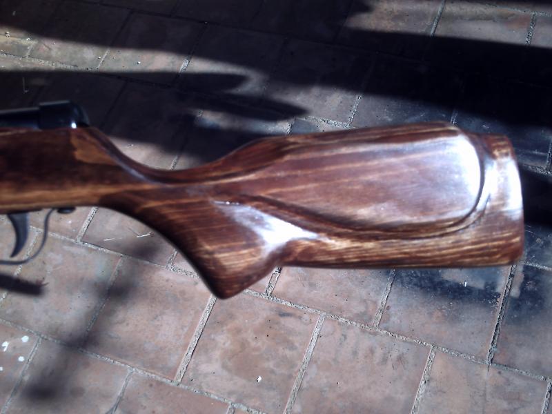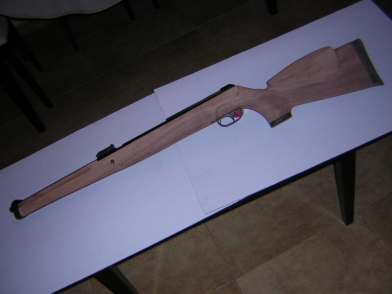 bueno aqui esta mi chapuzastuzen , esta practicamente acabada, pongo fotos para deleitaros, tiene las madidas exactas a la carabina original . el proceso no es facil y mas sin herramientas saludos