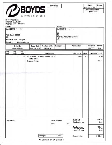 Yo nunca he hecho un pedido superior a 100 USD...de modo que es posible lo que dices. Lo he mirado y parece ser que en culatas y guardamanos de escopetas no hay limite de precio en el pedido....no sé, mi inglés es "nivel usuario" jajaaj De modo que les he enviado un correo preguntándoles explícitamente la historia.