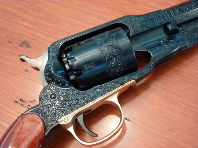 este es un Remington Pietta pavonado profesionalmente por Iparguns, a años luz de pavones caseros. Nótese que el profesional no cae en el error del aficionado, de dejar excesivo brillo, sino que se centra en mas bien dejar el acabo pulcro, que es distinto.