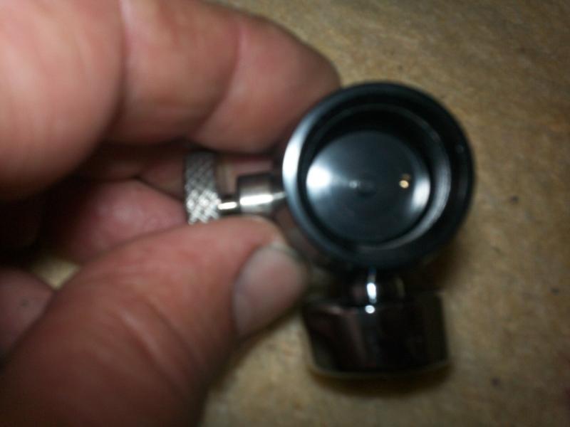 con el adaptador y regulador puesto al estar la botella mas distanciada de la entrada del cañon,no pega con este,en esta foto esta justo pero hay que tener en cuenta que la funda del cañon no es la suya es un milimetro mas gruesa,concretamente un tubo de cobre de 15,imprimado y pintado,ojo si la pones directamente en el tapon,si que pega