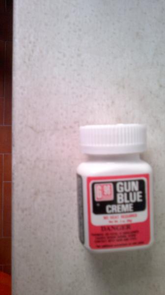 Hice un pedido de piezas que faltaban para "oxidá" a Servando y de paso compré un bote de pavón, el permablue que tenían en stock, supongo que será parecido al GUN BLUE CREME que me has comentado.