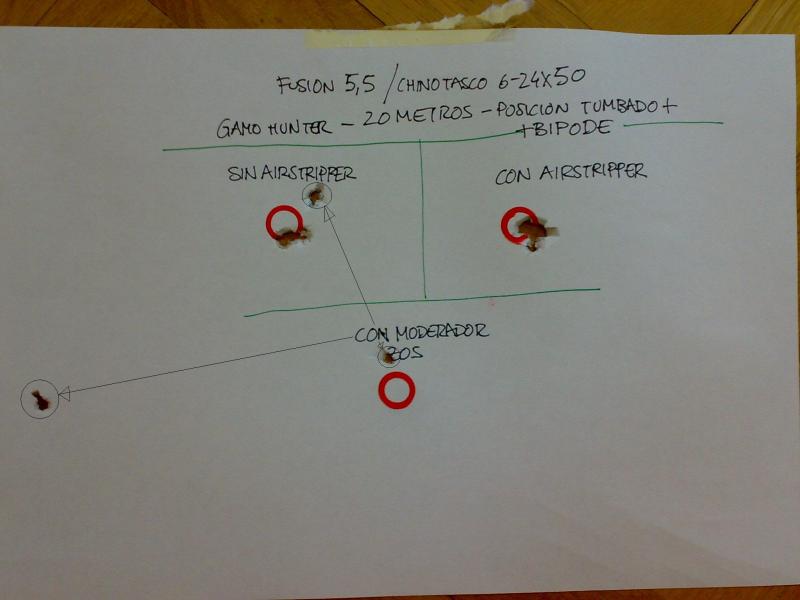 He disparado a 20 metros Cometa Fusion con airstripper, sin airstripper y con el silenciador zos.