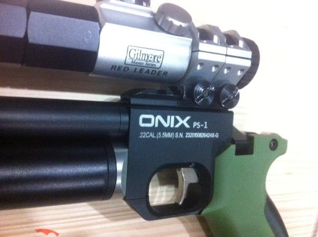 buen dia. ayer me llego esta Onix del .22 , al crony me da 16 julios justos con el jumbo de 15,90 gr. tal cual venia , no la he tocado nada ( aun ) , solamente la monte este punto rojo y le adapte un culatin que tenia retirado de una crosman , haber si os gusta , sencillo, comodo ya que por medio del carril picantiny ajusto la longitud del culatin y barato